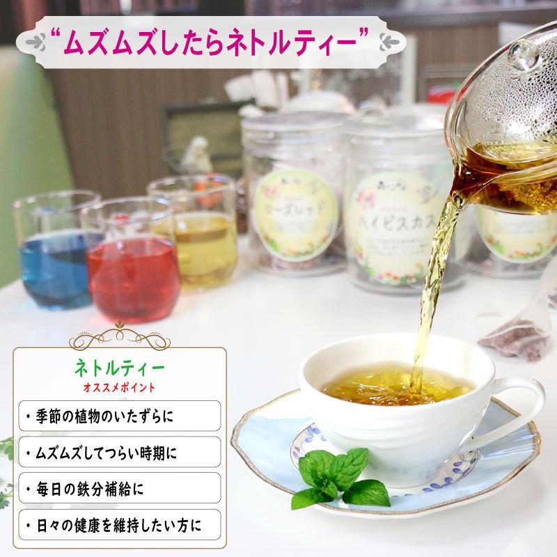 ネトルティーを美味しく飲む方法と作り方 基本の作り方 ティーカップ1杯のネトルティーに対して、ドライネトルの量はティースプーンに山盛り1杯くらい。 ティーポットにネトルを入れ、お湯を注ぎます。 フタをして3分蒸らしたら、完成です。 ネトルの効果・効能 ビタミン、カルシウム、マグネシウムなどのミネラルを豊富に含むネトル。 特に鉄分が多く、貧血を予防して血液を浄化する作用に優れています。 婦人病の治療や、生理の出血量をコントロールするなど、女性特有のトラブルの解消 花粉症だけでなく、貧血になりやすい女性に嬉しい効果ばかりですね。 抗アレルギー作用(ヒスタミン) ネトルにはヒスタミンという抗アレルギー物質が大量に含まれています。 実は、これはネトルさんもご自身を守るための対策だったようで、、